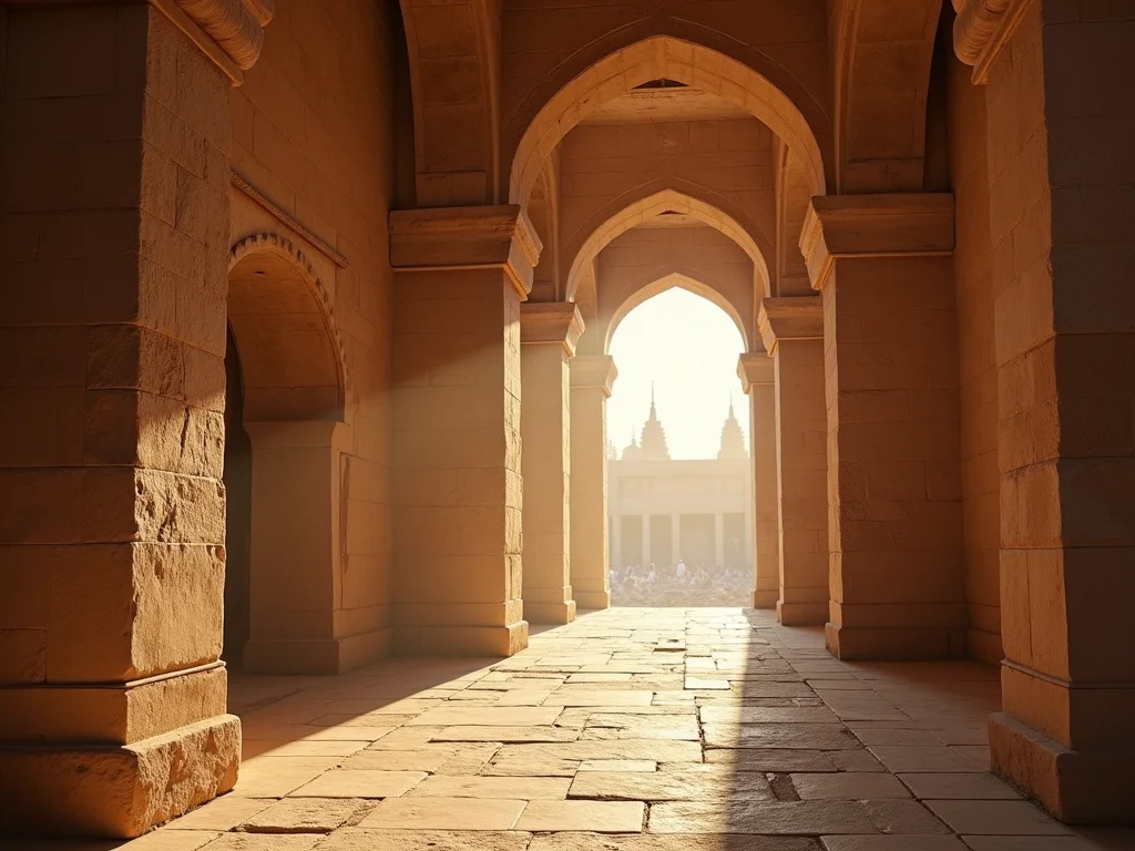 Arquitetura islâmica detalhada de uma mesquita no Cairo Antigo, com arcos elaborados, minaretes altos e padrões geométricos em relevo.