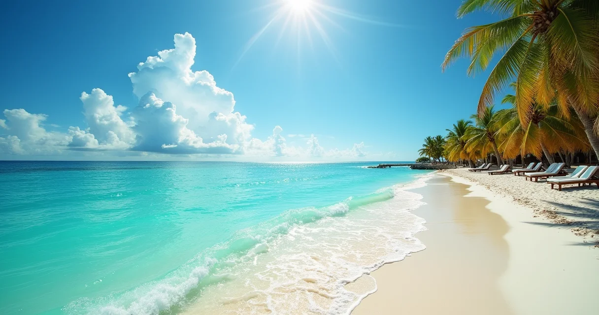A areia branca das praias de Cancún reflete a luz, criando um brilho natural que realça a beleza das paisagens.