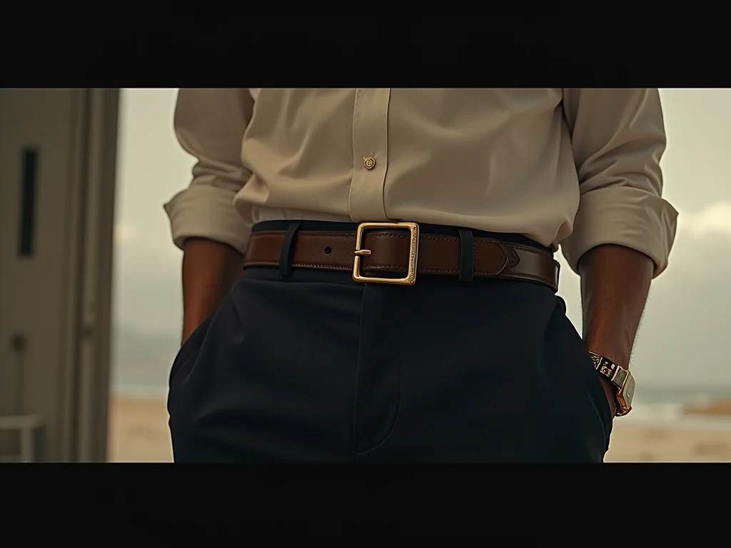 3. Ocasião Define o Estilo: Um cinto de fivela gigante não combina com terno. Pense onde você vai usar. Para eventos formais, opte por cintos sociais masculinos com fivelas discretas. Para o dia a dia, a liberdade é maior. Considere a ocasião, o tamanho e a combinação com os sapatos.