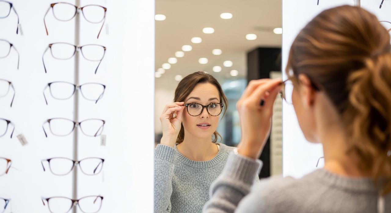 Muitas vezes, o modelo que parece perfeito na vitrine não é o que melhor se adapta ao rosto. Por isso, experimentar diferentes armações é essencial.
