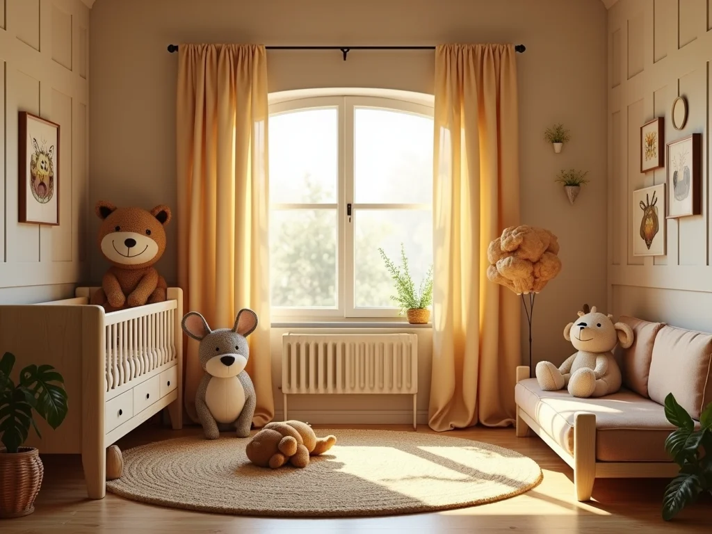 Os tecidos desempenham um papel crucial no conforto e na estética do quarto. Para o tema safari, prefira materiais naturais e aconchegantes. Tapetes em tons terrosos ou com estampas sutis de animais trazem calor e maciez ao piso. Cortinas leves em linho ou algodão ajudam a controlar a luminosidade, mantendo o ambiente arejado. A roupa de cama, como o enxoval safari bebê, pode apresentar estampas delicadas de animais ou folhagens, reforçando o tema sem sobrecarregar. O conforto térmico é essencial, garantindo que o bebê esteja sempre bem, independentemente da estação.