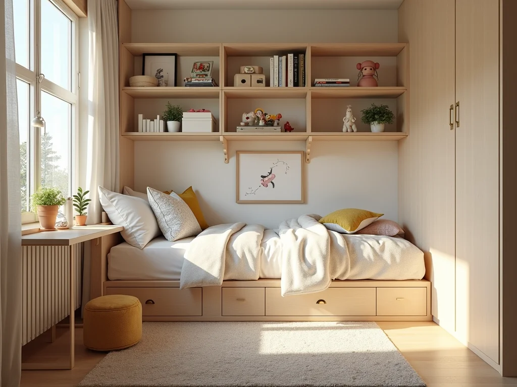 | Móveis Multifuncionais: O Segredo dos Quartos Inteligentes | Móveis que servem a mais de uma função otimizam o espaço. Pense em camas com gavetas, baús que viram bancos ou escrivaninhas dobráveis. | Invista em uma cama com gavetas embutidas. Um pufe baú serve para sentar e guardar brinquedos. |
