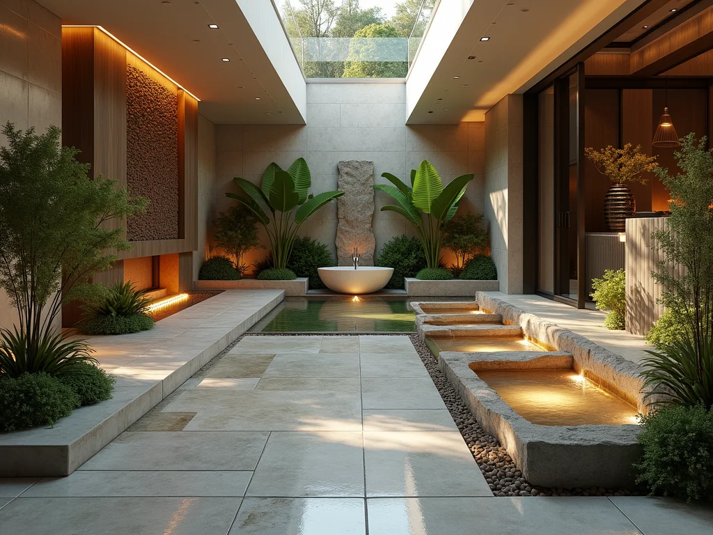 As fontes de bambu evocam uma sensação imediata de paz e harmonia, muito associada ao estilo zen e oriental. O material natural, com seu tom terroso e textura única, combina perfeitamente com elementos como pedras e plantas, criando um visual orgânico e relaxante. O som suave da água fluindo pelo bambu tratado é um convite à meditação e ao desestresse.