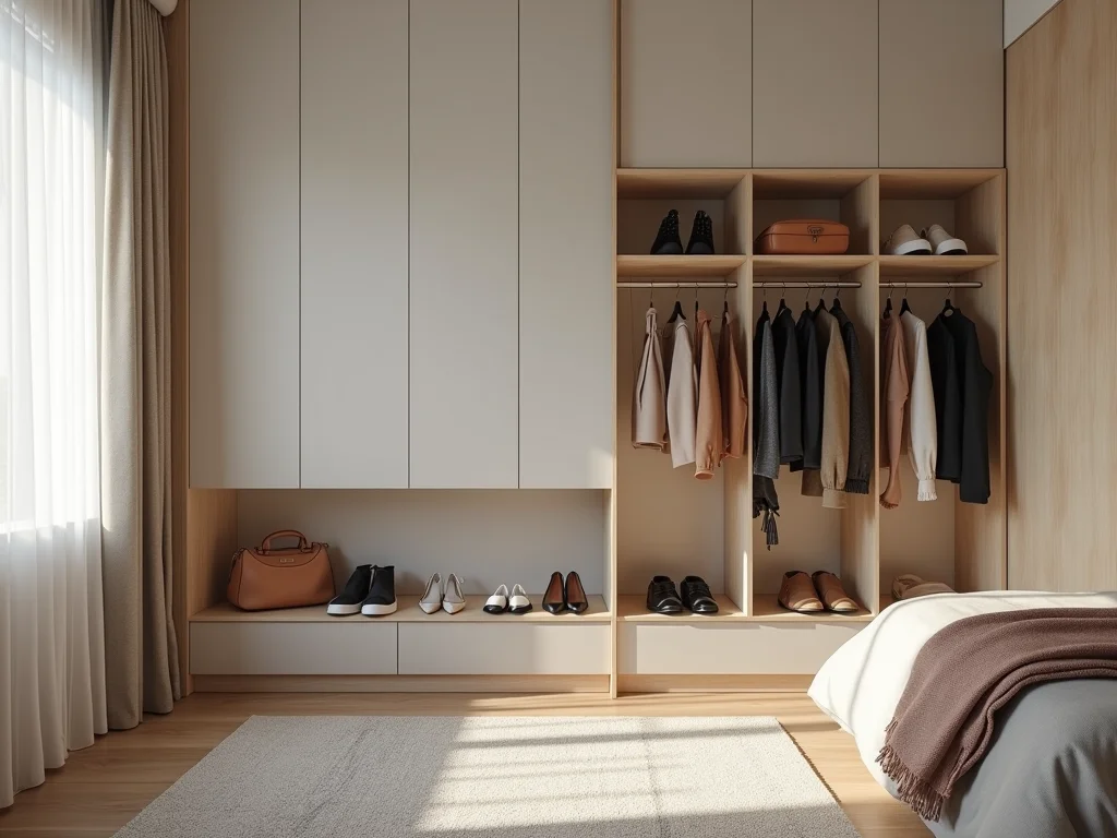 Para quartos pequenos, a dica de ouro é usar móveis que tenham mais de uma função. Uma sapateira com espelho não só guarda seus sapatos, mas também ajuda a dar aquela sensação de amplitude que a gente tanto busca. É um truque visual que funciona maravilhosamente bem!